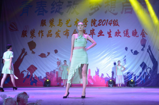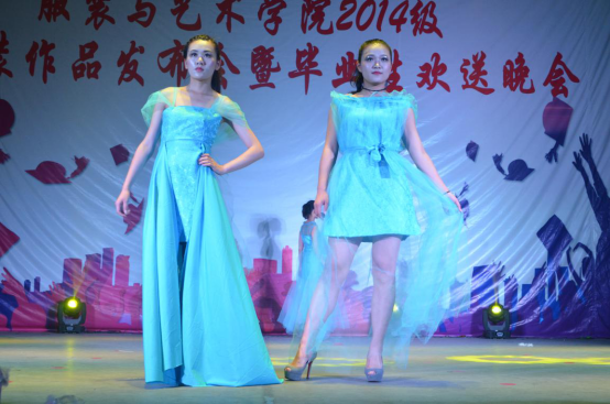服装作品发布会上,2014级服装与服饰设计专业的毕业生们拿出了自己的看家本领,为观众送上了以“星空物语、都市精灵、蓝色大海的传说”和“中性粗剪风”为主题的两场时装大秀。