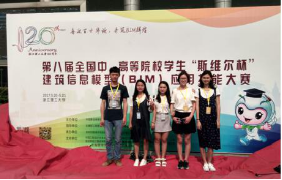 本网建筑工程学院消息 5月20日至21日,由中国建设教育协会主办的第八届全国中、高等院校“斯维尔杯”建筑信息模型(BIM)应用技能大赛在浙江理工大学(南方赛区)和吉林建筑大学(北方赛区)举行,我校建筑工程学院学子在大赛中将专项二等奖、团体全能三等奖等5个奖项收入囊中。