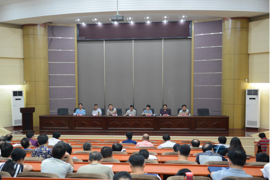 本网讯(记者 刘彦)7月13日下午,我校在求真楼报告厅召开全校干部大会,就进一步推进全国文明城市创建和省级文明单位复查迎检工作进行再动员。校党委班子成员、全校副科级以上干部、支部书记、在职教授参加了会议。