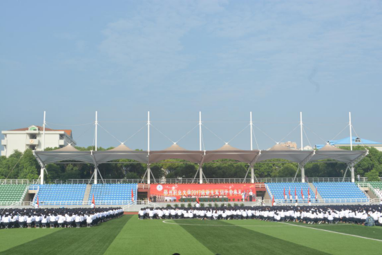 本网讯(记者 刘彦/文 学生记者 牟连华 李飘云/摄)9月9日上午,我校2017级新生军训开营典礼在西区体育场隆重举行,全体校领导及海军工程大学电子工程学院干部训练大队一队政委焦学民出席开幕仪式,校长洪贞银致辞。