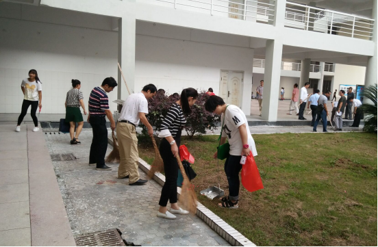 走在校园内,随处可见红衣志愿者和学校教师拿着铲刀、刷子、扫帚、铁锨在清洁校园,由于新生开学,校园环境整治工作量明显增大。为此,学校在开学期间加大了巡回保洁频次,增派保洁人员,加强督导巡查与宣传引导,确保校园环境一直干净整洁。
