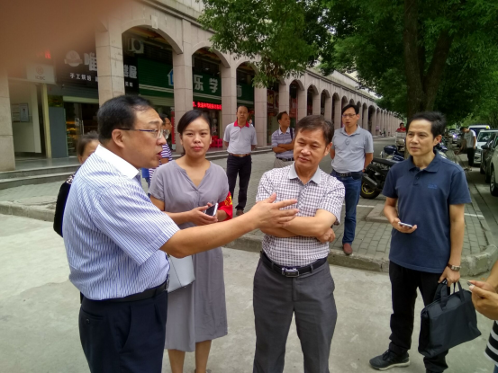 本网讯(记者 双全)9月13日上午,市委常委、宣传部长古新功携城管、交警、街道、社区负责人一行来我校实地指导“文创”工作,了解我校在创建过程中遇到的困难,着重解决重点和难点问题。他要求我校要群策群力,克服一切困难,打好“文创”工作的攻坚战。校长洪贞银陪同指导,学校相关部门现场听取了意见。