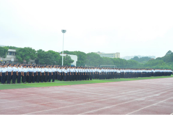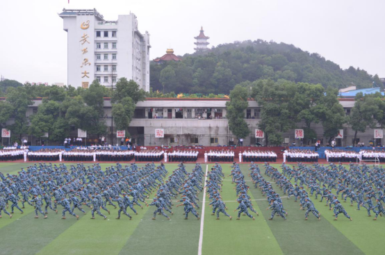 尽管细雨不断,但军训新生们热情不减,昂扬的精神、铿锵的口号、踏地有声的步伐,获得了观众们的阵阵欢呼和掌声。