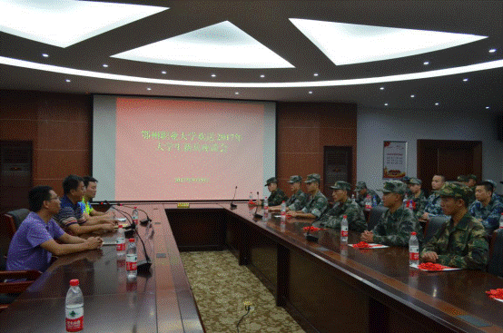 本网讯(学生记者 夏一林/文 牟连华 李飘云/摄)投笔从戎献青春,拳拳之心报家国。9月9日下午,我校52名大学生新兵即将离校奔赴军营,副校长胡海平出席在图书馆一楼会议室举行的座谈,送别2017新兵。