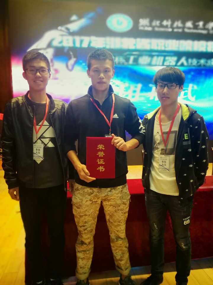 “这可把我愁坏了,之前从来没参加过这样的比赛,一没设备二没师资,而且学校工业机器人专业学生今年才首次招生,新生刚军训完,肯定没法参赛。”严峻说,为了能组队参赛,她只得从学院专业协会物色人选,初选了5人,最终留下了16级机电一体化技术专业的徐浩、谢蔚天和16级机械设计与制造专业的汪宏伟3人。