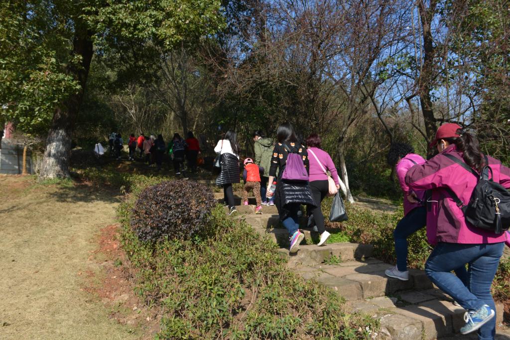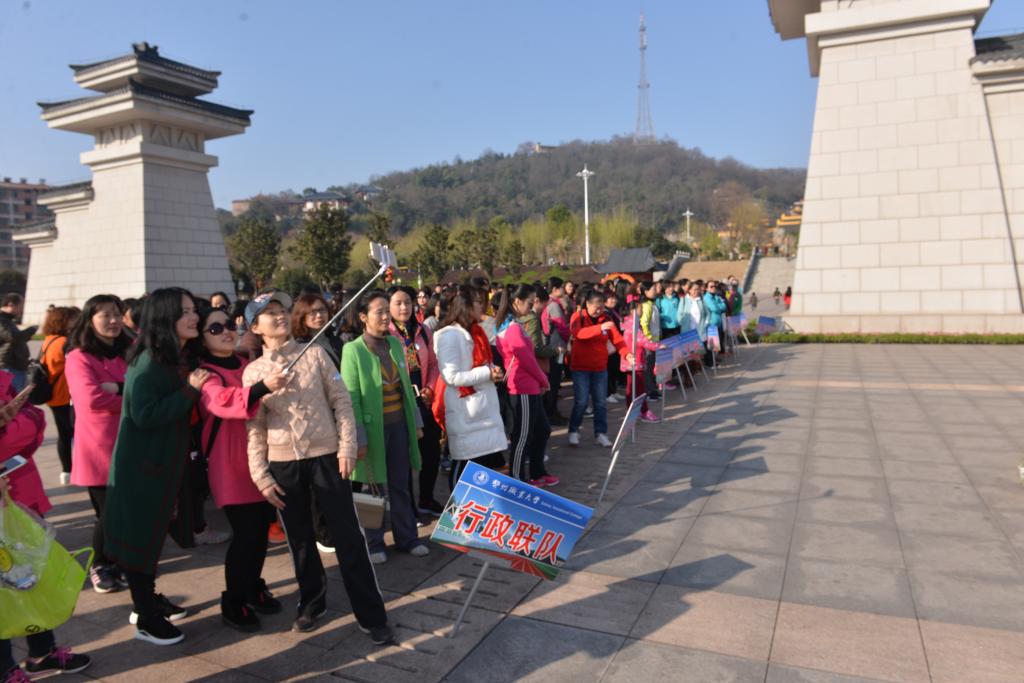 早上8点左右,身着运动装的女教职工们来到西山东门广场,集体合影留念后一起向西山顶进发,沐浴着和煦的春光,一路欢声笑语,尽情领略自然美景,释放工作压力,享受节日喜悦。经过一个小时左右的攀登,终于陆续到达活动的终点——望江亭。