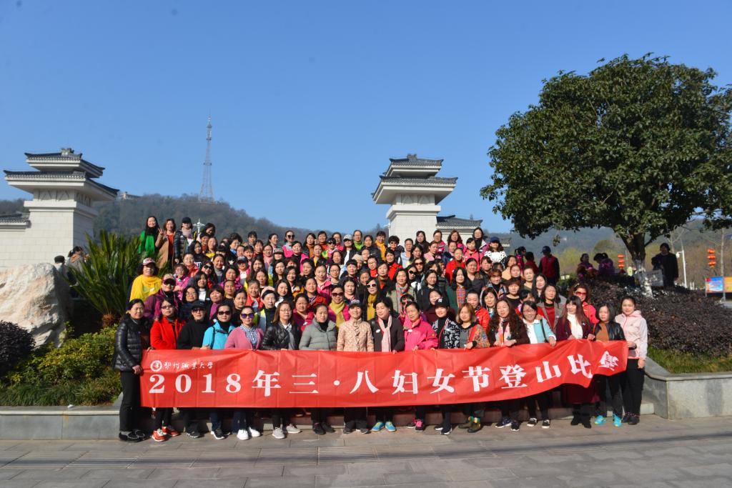 本网讯 (记者 双全)3月10日,我校女教职工200余人以集体登山赛的形式欢度三八妇女节。