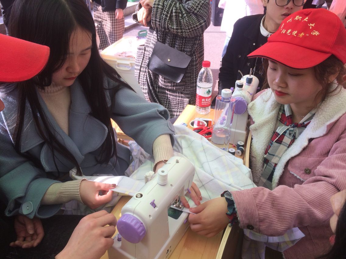 服装与艺术学院志愿者则为市民提供义务织补服务,师生们带来了1台大缝纫机和6台小型缝纫机。“市民对我们提供的服务非常满意,刚刚还有一位女士骑电动车经过时,让我们帮忙补好了她车上的挡风布。”该学院团总支副书记王莺莺同学说。