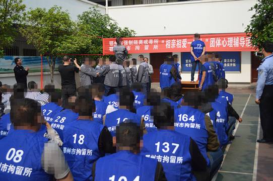 本网学工处消息 4月27日下午,我校思政课部与心理健康教育中心组织心理咨询师和心理志愿者来到鄂州市强制戒毒所,为两个所的80名管教对象和部分家属作了主题为“相亲相爱一家人”的团体心理辅导活动。
