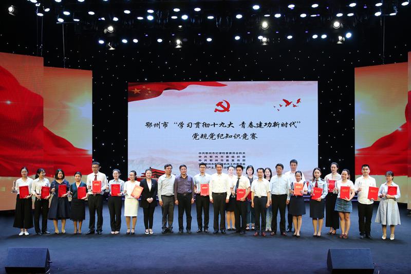 本网讯 (记者 刘彦)5月9日,全市“学习贯彻十九大青春建功新时代”党规党纪知识竞赛决赛在鄂州广播电视台一号演播厅举行。18支队伍展开激烈角逐,我校代表队流利作答、从容应对,并荣获二等奖。