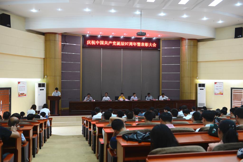 本网讯 (记者 刘彦/文 宣葶/摄)6月29日,我校在求真楼学术报告厅召开“庆祝建党97周年暨七一表彰大会”,校党委班子成员和全校副科级及以上党员干部、各支部书记、各级党组织组织委员、离退休党员代表参加了大会。