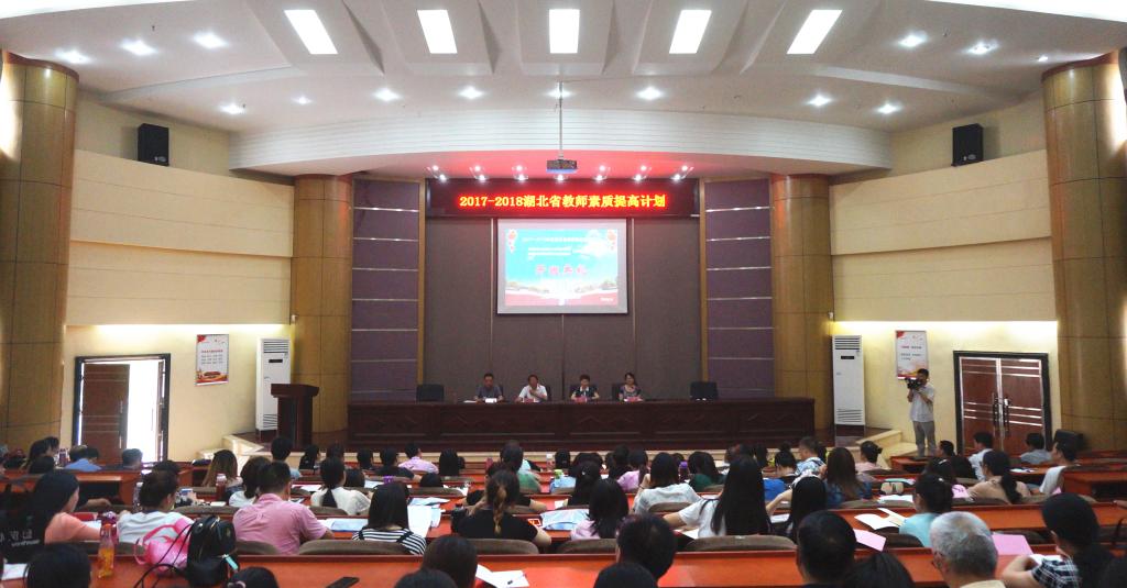 本网讯 (记者 宣葶 文/摄)7月2日上午,2017-2018湖北省教师素质提高计划学前教育教师培训(第一期)在我校求真楼报告厅正式开班。校党委副书记周岫出席了开班仪式并致辞,副校长杨殿生主持,来自全省60余所中职院校的120余名骨干教师及我校各院部处室负责人参加了开班典礼。