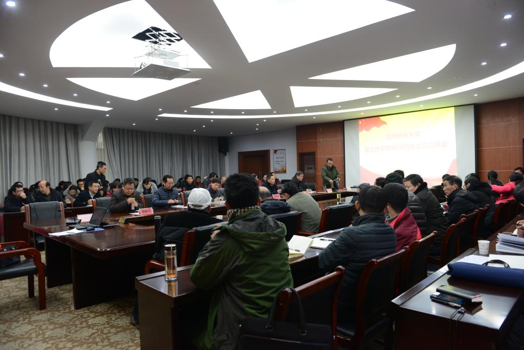 洪贞银指出,我校是伴随着改革开放的历程不断发展壮大起来的,建校35年以来,学校在办学规模、办学条件、校容校貌等方面都实现了跨越式的发展。我们在回顾改革开放发展成就的同时,也要总结好学校走过的不平凡的发展历程及成功经验,并在总结中扬帆起航再出发,推动学校各项工作向着更高的目标奋进。