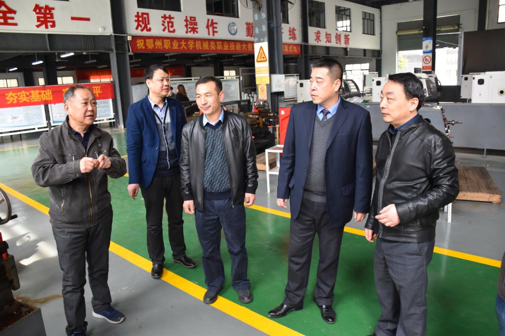 在周峰的陪同下,姜建榕一行实地参观了我校国家建筑技术实训中心、汽车工程实训中心和数控技术实训中心,并在图书馆一楼会议室与我校相关院(部)、处室负责人进行座谈。