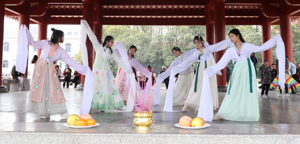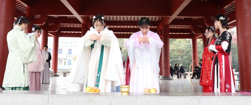 “花朝节是我国汉族一个重要的民间传统节日,俗称‘百花生日’‘花神节’。一般于农历二月初二、二月十二或二月十五举行。”据汉服文化协会会长刘艳介绍,节日期间,汉服同袍们会身着汉服进行各种活动,除传统祭祀仪式外,同袍们还会结伴郊游赏花,将五色彩纸、红绳粘在花枝上,祈求花神降福。