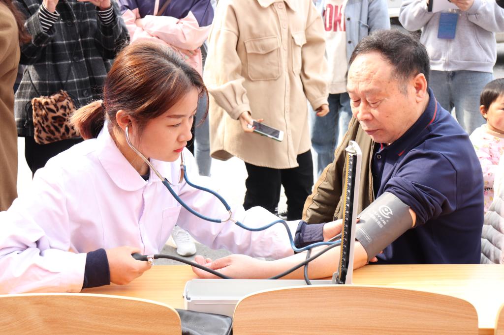 相比其他学院的志愿服务活动,医学院的服务种类更为丰富,除了有测量血压、普及心肺复苏术,还有按摩等康复治疗。据了解,该学院参与此次活动共有28名志愿者,其中,既有学生,也有老师。