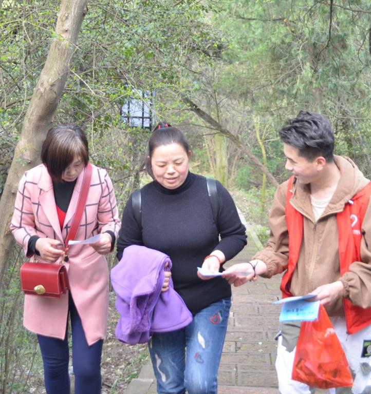 活动当日,志愿者们分成两组,一组负责对西山景区各条道路沿线环境进行巡查,理清散落在各处的垃圾;另一组向游客发放宣传单页,呼吁广大市民不乱丢乱扔,保护环境从我做起,并对不文明现象进行劝阻。