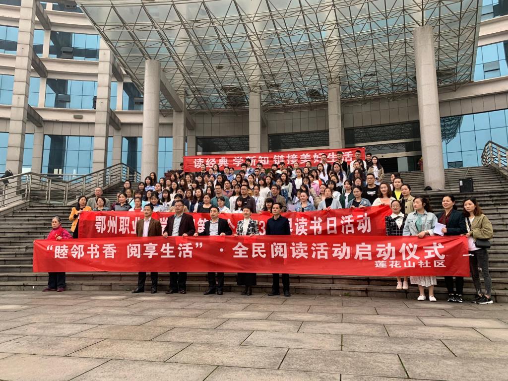 本网讯 (记者 双全)4月23日是第24个世界读书日,早上7点30分,我校2019年“读经典学新知链接美好生活”全民阅读活动启动仪式在图书馆前广场举行。校长周峰、副书记周岫、副校长胡海平出席启动仪式,宣传部、图书馆等相关部门负责人与近百位师生读者及莲花山社区代表参加活动。