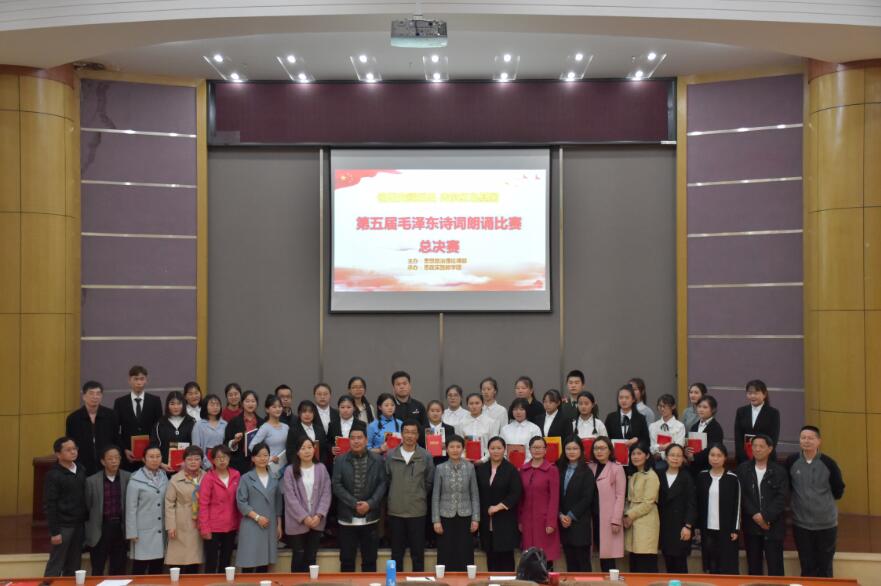 本网讯 (学生记者 杨思露)4月28日下午,由思政课部主办、思政实践教学团承办的第五届“毛泽东诗词朗诵比赛”总决赛在求真楼学术报告厅举行。校党委副书记周岫出席活动并作总结讲话。