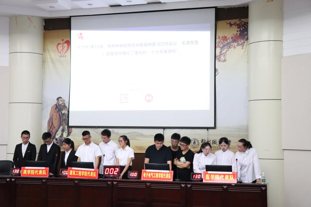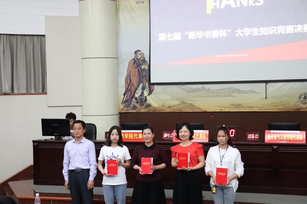 本次知识竞赛由校团委、图书馆和湖北省新华书店(集团)有限公司鄂州市分公司联合主办,校读书协会承办。比赛分为个人赛和团体赛两个部分,共有必答题、抢答题、风险题三个环节,题型为选择题、填空题和简答题。