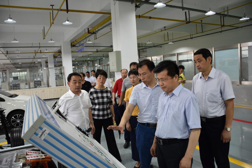 陶宏一行在校长周峰的陪同下先后参观了我校汽车工程实训中心、数控技术实训中心,并就人才培养、专业建设、学生工作等方面进行了详细了解。