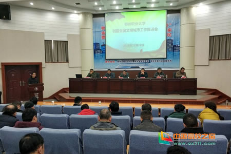 12月12日,鄂州职业大学在图书馆二楼学术报告厅举行创建全国文明城市工作推进会,动员全校各相关单位积极行动,为鄂州创建全国文明城市担当责任,贡献力量。校党委班子成员、全校中层正职以上干部参加了会议。