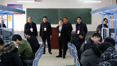 校领导高度重视此次单招考试,校长周峰亲临考场巡视。