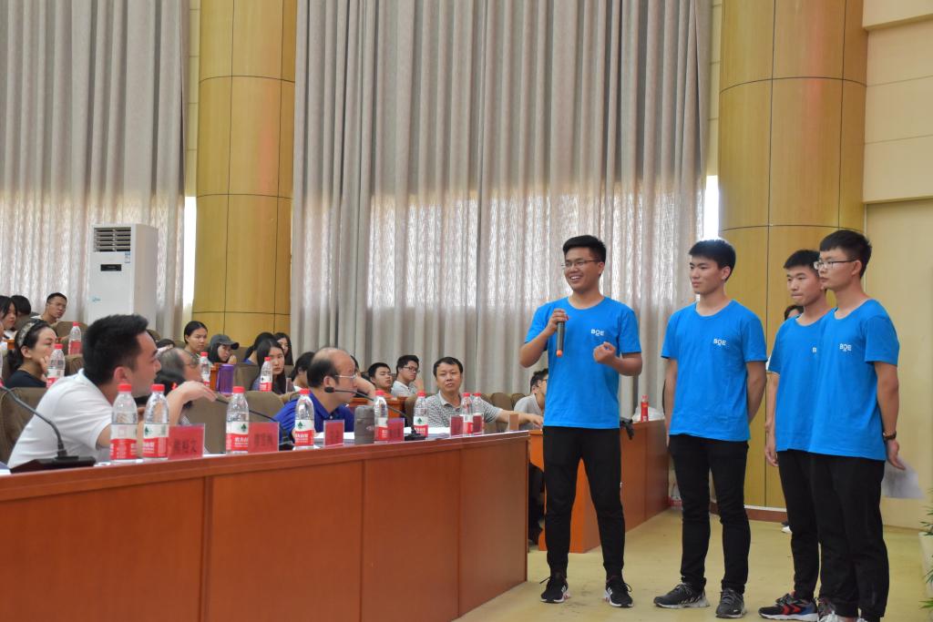 本届大赛以“敢为人先放飞青春梦、勇立潮头建功新时代”为主题,采取“5+3”模式,即5分钟路演和3分钟答辩。各参赛团队结合PPT演示文稿,用简练的语言从产品的市场定位、商业模式、营销策略等内容进行重点阐述,并接受评委老师的现场提问。大赛共评出一等奖3项、二等奖5项、三等奖7项,获奖团队将接受后续培训并择优推荐参加湖北省赛。