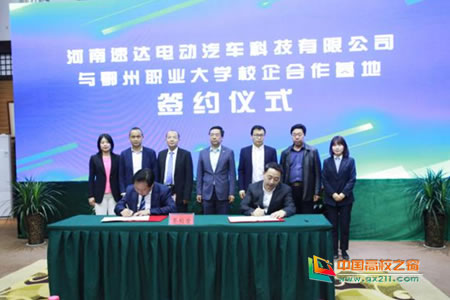 周峰与李复活签订“校企合作协议”,并为“湖北鄂州职业大学—河南速达电动汽车科技有限公司校企合作基地” “新丝路上的蓝色集装箱文化教育交流中心”揭牌。
