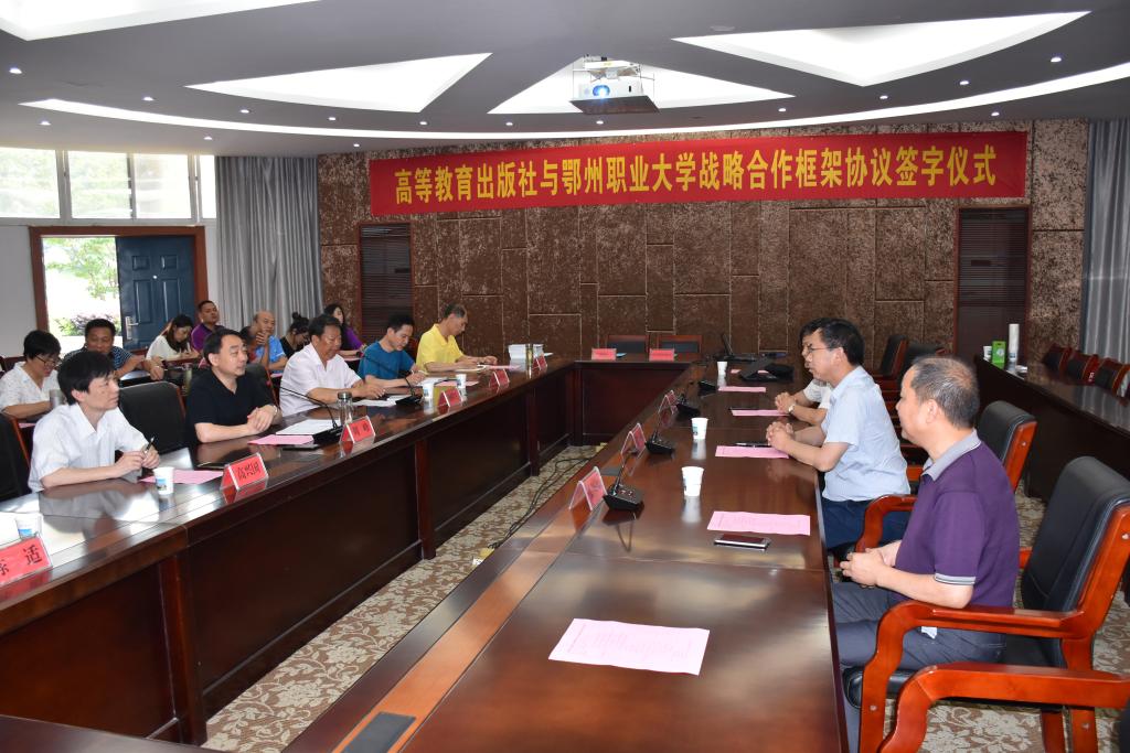徐刚简要介绍了高等教育出版社的有关情况。他表示,此次战略合作关系的建立,对学校推动高职教育改革发展、提高内涵建设水平意义重大。他希望,未来双方能够在专业资源库、在线开放课程、在线精品资源课程、教材建设以及教师培训等方面充分实现资源共享、优势互补,强强联合,实现双方互利共赢。