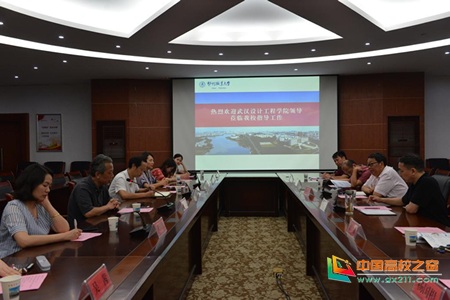 7月4日下午,武汉设计工程学院副院长毛春义一行来鄂州职业大学参观交流。校长周峰,副校长杨殿生热情接待。