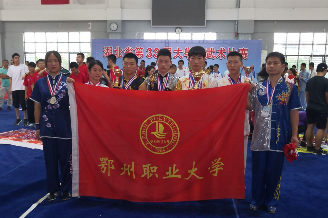 本网体育课部消息 7月10日至12日,湖北省第33届大学生武术比赛在武汉体育学院武当山国际武术学院举行。由我校体育课部7名运动员组成的武术代表队在比赛中顽强拼搏,荣获丙组5金6银2铜和丙组男子团体总分第三、丙组女子团体总分第四、丙组男女混合团体总分第三的优异成绩,还有2人荣获“精神文明运动员”称号。