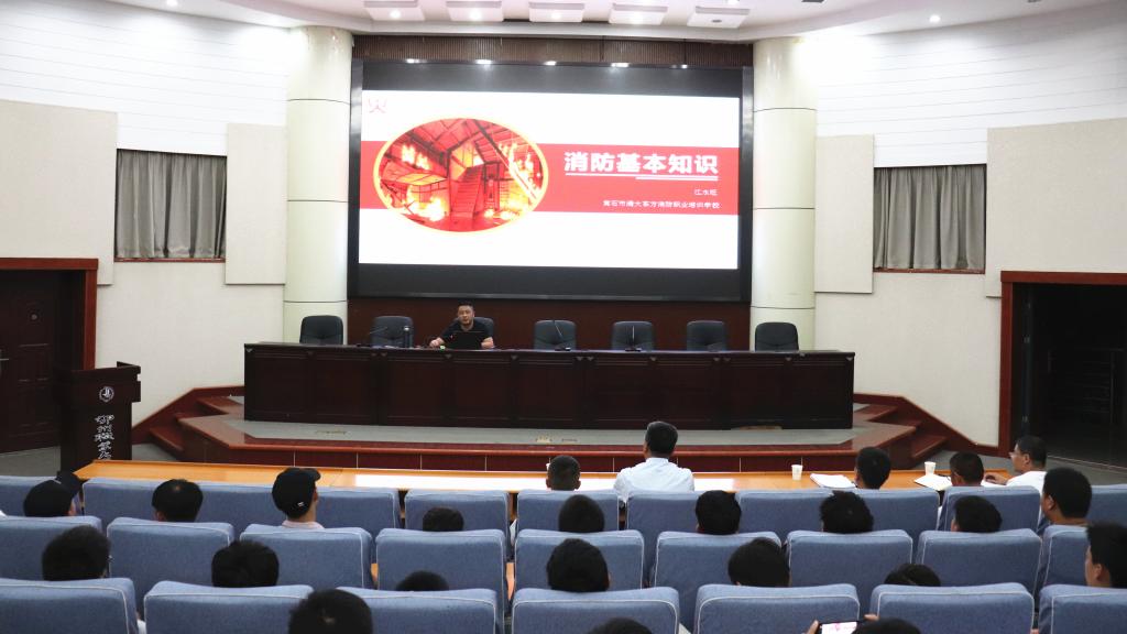 汪水旺校长通过三组数据向大家介绍了近三年来我国消防安全形势,并运用图片、视频等资料和近年来发生的真实火灾案例,特别是十大高校发生的火灾案例,分析了火灾事故发生的原因,阐述了火灾的严重危害。接着,他从消防法的相关规定、火灾分类、消防设施的使用以及火灾扑救与逃生四个方面进行详细讲解,并围绕教室、宿舍、实验室等消防日常管理,介绍了常见灭火器种类及干粉灭火器的使用方法和消防急救、逃生自救、灭火常识等知识,呼吁大家“消防在于预防,预防在于重视,重视在于执行,执行在于检查,检查在于管理”。