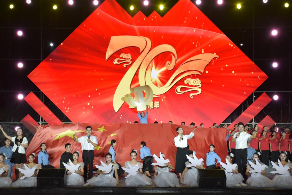 激情澎湃的灯光秀拉开了晚会的帷幕。情景剧《奋进中的鄂大》,展现了我校35年来栉风沐雨、砥砺前行的发展史。表演唱《我爱你中国》、舞蹈《少年志》、《征程》,知名校友张艳林的歌伴舞《红星照亮我前行》,情景朗诵《信仰》、《我们的中国》,演绎出了鄂大学子浓浓的爱国情怀,燃爆全场。校园音诗画《我要飞得更高》,与全场一同喜迎航空工程学院成立“满月”。身着旗袍、手执古筝、Cosplay、时装展示、街舞……由各学生社团联合带来的表演惊艳无双。晚会最后,全体师生集体《歌唱祖国》,全场久久沉浸在共同庆祝祖国母亲70华诞的节日喜悦之情中。
