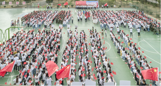 9月26日下午,医学院师生在四号篮球场举行“我和国旗同框”主题教育活动,近千名师生纷纷在“我和国旗同框”背景板前合影、打卡留念,为新中国成立70周年送上最真诚的祝福。