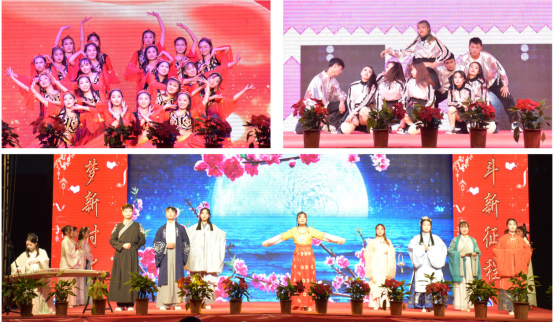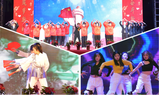 晚会现场,舞蹈、独唱、武术等多个节目轮番上演。青春洋溢的《告白气球》温暖全场;充满异域风情的古典舞蹈《楼兰少女》把少数民族的热情与奔放表现得淋漓尽致;魅力四射的街舞表演引得观众们阵阵尖叫;汉服走秀《礼仪之邦》把古朴典雅的袅袅琴声和中华民族悠久的汉服文化相结合,为观众呈现出一幅古色古香的画卷;朗诵《青春中国》让每一位热血青年内心激昂,心潮澎湃;武术表演《精武忠魂》,演员们表演的拳法、棍术、剑术,时而虎虎生风,时而行云流水,引得现场掌声雷动;人影戏《你好,我的鄂大》将鄂大学子从报名、军训、上课、爱情到毕业绘成缩影,记录成长,放飞梦想。