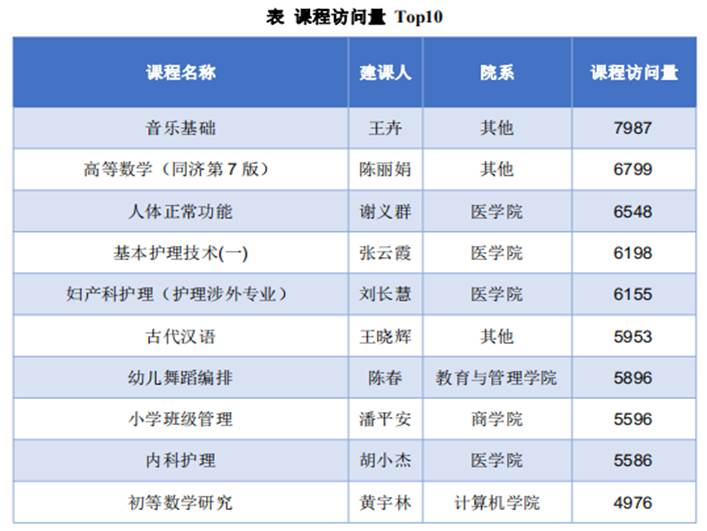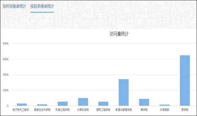 2020年1月以来,我校师生访问超星平台访问量超过6000000人次,从院部维度来看,医学院的访问量最高;从师生们的使用习惯上看,74.2%的师生更倾向于利用移动客户端访问;2月起网络教学平台建设课程280门,课程章节10867个,任务点数5720个。
