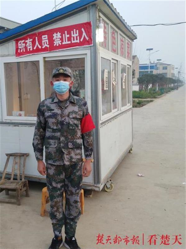 赵俊谱家住湖北省襄阳市襄州区程河镇。放寒假回老家后,由于此前去过武汉,他自行在家隔离了两周。隔离期结束后,他便立即报名参加了村里的志愿者队伍。主要负责每天为居民配送生活物资,为每名村民测量体温,深入各个队组进行防疫宣传,在卡点值守等等。