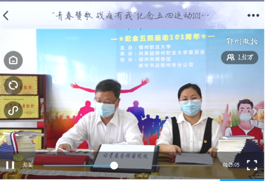 为纪念五四运动101周年,激励和引领全校青年学生大力弘扬以爱国主义为核心的伟大民族精神,加强理想信念教育,5月3日上午,鄂州职业大学团委开展了“青春赞歌,战疫有我”五四青年节主题团日直播活动。校党委书记万国光,校党委委员、副校长胡海平出席直播活动。全体在校师生和部分校友共1.98万人在线收看了直播。