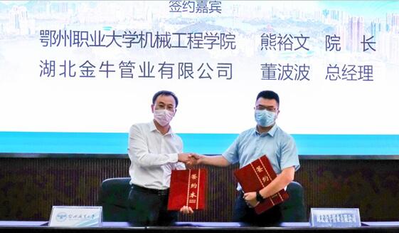 湖北金牛管业有限公司总经理董波波表示,公司与校方具有良好的合作基础,今后将继续发挥校企合作互补优势,协同制定专业人才培养方案,共同培养智能智造专业型人才。