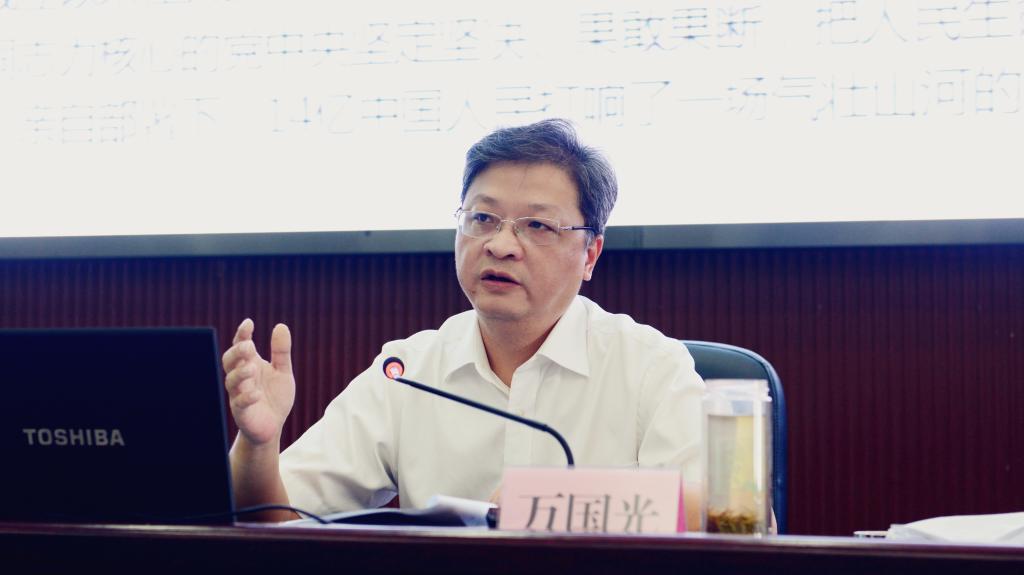 本网讯(记者 何建华)9月11日,在图书馆二楼学术报告厅,校党委书记万国光以“弘扬伟大抗疫精神 更加坚定四个自信”为题,为我校300余名师生讲授2020年秋季学期“思政第一课”。