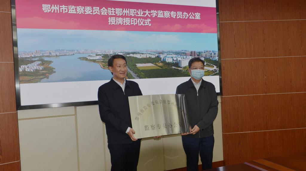 鄂州职业大学监察专员办公室授牌授印标志着我校纪检监察体制改革在历经统一思想认识、科学制定方案阶段后,进入了全面实施的新阶段,也标志着对学校党组织、党员干部和所有行使权力的公职人员监督全覆盖所需的组织架构全面形成,为在学校内一体推进纪律监督、监察监督、同级监督、派驻监督奠定了组织基础。