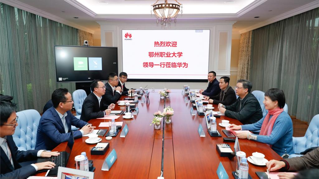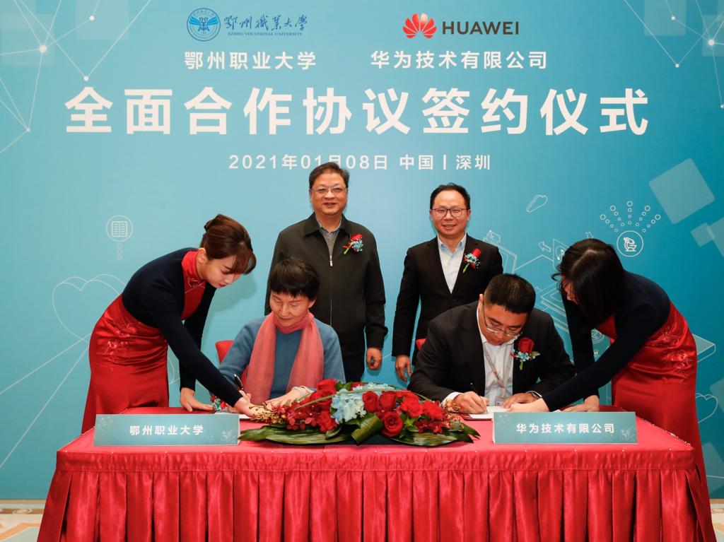 华为公司中国政企教育业务部、业务人才发展部及湖北政企业务部相关负责人,鄂州职业大学党委宣传部、计算机学院等相关部门和单位负责人参加了签约仪式。