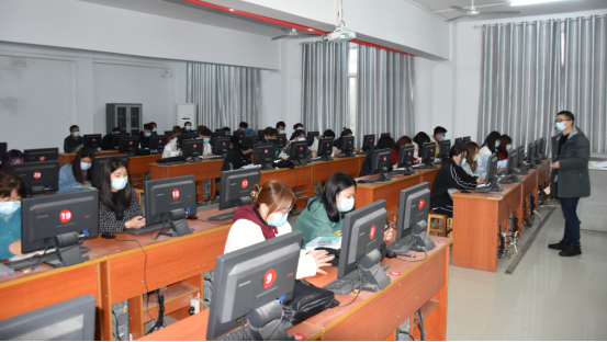 在建筑工程学院实训中心C301教室黄志辉老师讲授的《室内CAD二》课堂上,万国光与学生一起认真听课,细致做好听课记录,详细了解教师授课及学生课堂学习情况,对整体教学秩序表示认可。