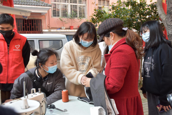 服装艺术学院的志愿者们则为社区居民提供了义务织补服务。“我们自备了几台缝纫机,可以为市民安装拉链、改裤脚等,做一些简单的缝补。”该院一名志愿者说。