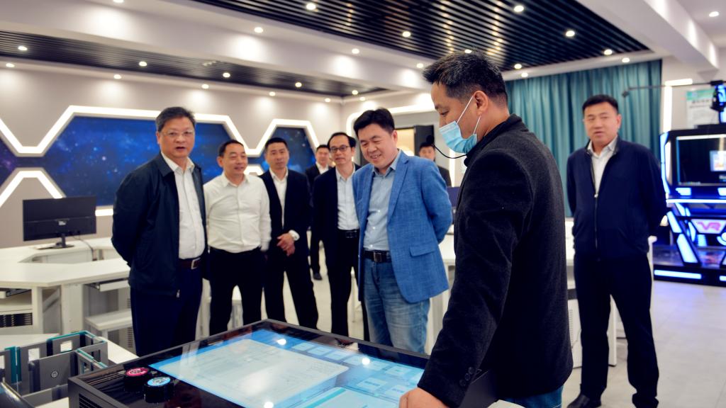 赵强一行实地考察了我校莲花山庄,参观了建筑工程实训中心、汽车工程实训中心、数控技术实训中心。校企双方在图书馆一楼会议室就寻找项目合作契合点进行了深入探讨交流。
