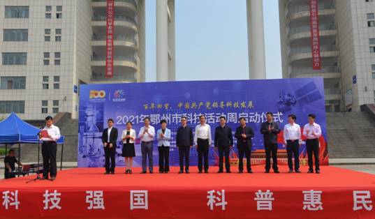 本报讯(记者 双全/文 刘晓粤 谭明雯/摄)5月21日,鄂州市2021年科技活动周启动仪式在我校求真广场举行。市委常委、宣传部部长朱其敏宣布启动,市人大常委会副主任袁谟浩、副市长程少云、市政协副主席何大刚,我校党委书记万国光参加活动。