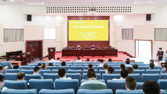 本网讯(记者何建华)5月27日下午,我校党委中心组(扩大)集体学习活动在图书馆二楼学术报告厅举行,专题学习改革开放时期历史。思政课部教师吴寒梅做专题辅导,会议由校党委副书记、副校长王家绪主持,全校副科级以上干部、各党支部书记、思政课部全体教师及思政实践教学成员代表参加学习。