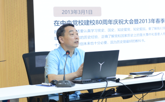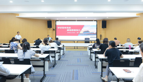 本报讯(记者何建华)6月10日,校长周峰以“学好百年党史、感悟思想伟力”为题在图书馆一楼2号会议室为图书馆和审计处的教师们上了一堂生动的党史学习教育课。