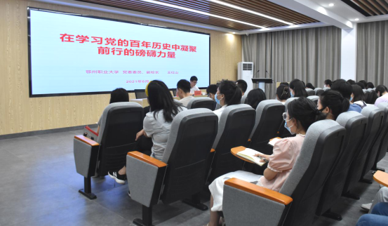 本网讯(学生记者 刘虹、何熙玉/文 文贞杨/摄)6月27日晚,我校服装与艺术学院党史学习教育在建筑工程学院实训中心一楼报告厅举行。校党委委员、副校长王红山以“在学习党的百年历史中凝聚前行的磅礴力量”为题作专题辅导。服装与艺术学院党员教师及学生入党积极分子共50余人聆听学习。